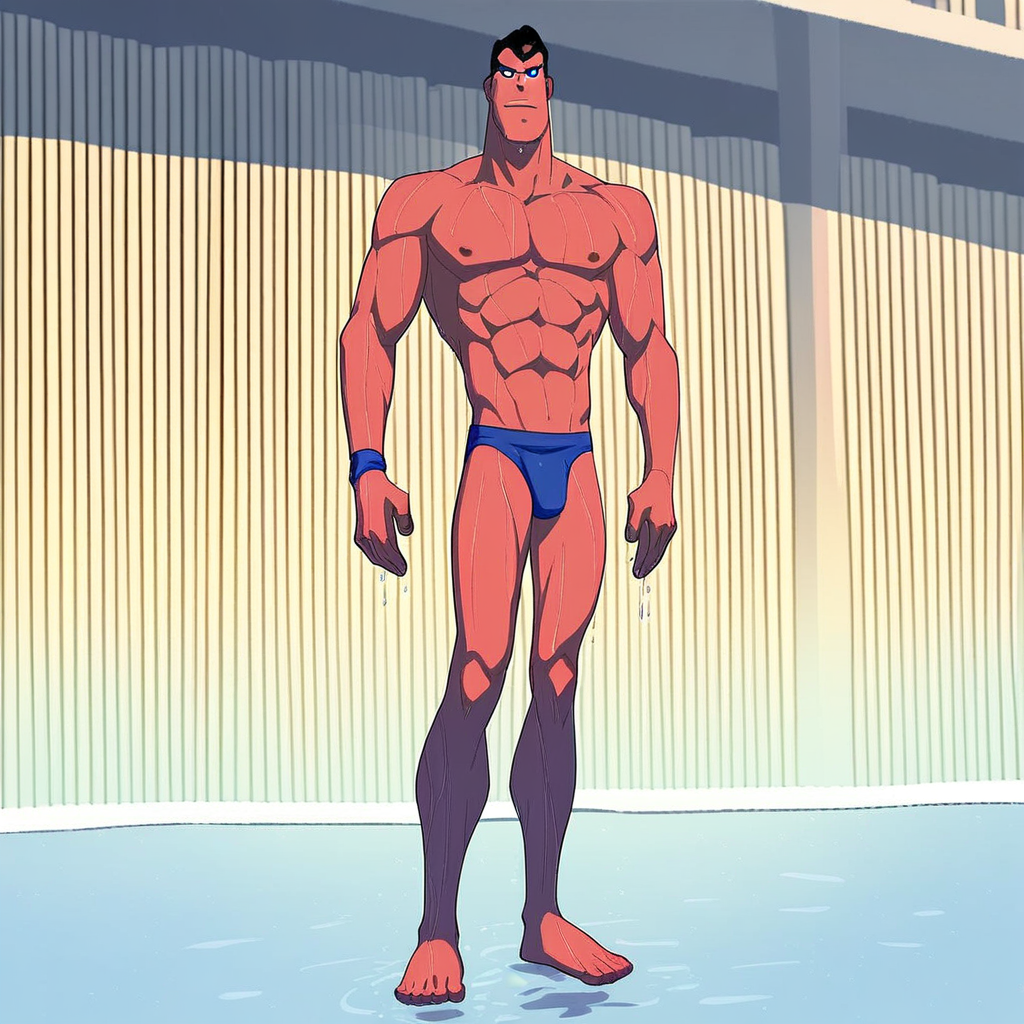 Superman, 1boy, solo, male focus, muscular, muscular male, short hair, black hair, blue eyes,