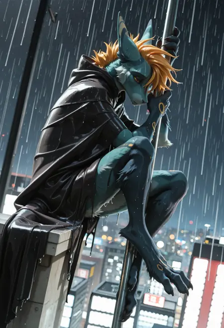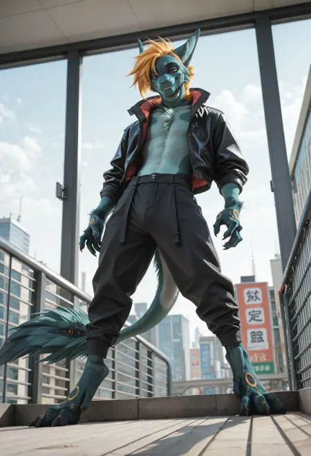 📝 Rocket 是由 Underscore 创建的极具魅力的毛茸茸龙原创角色——完美融合了反派的迷人气质与视觉吸引力。他以青蓝色的身体、火焰般的橙色鬃毛,以及带有铜环标记的长尾为显著特征,是时尚JRPG反派的典型代表。自信、傲慢、带着戏剧性的自满,他热爱独白、夸张的举动,以及成为众人焦点。常穿着带有铜色装饰的黑色乳胶套装和皮质斗篷,凸显其修长健美的体型。