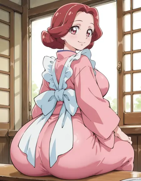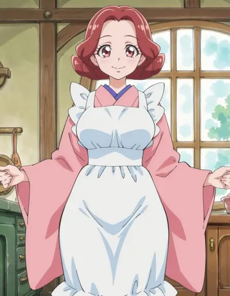 动漫截图,单人,1女孩,Lumiere,围裙,和服,女仆围裙,粉色和服,lora:lumiere_IL:0.8 高清晰度,绝佳画质,最佳画质,非常美观,杰作,超分辨率,