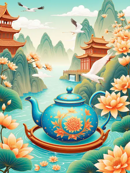国潮スタイルの平面イラストを生成し、金線で縁取るスタイルの効果を。