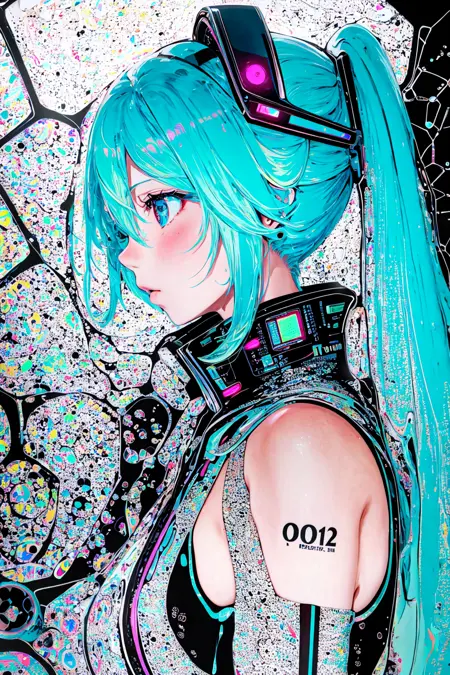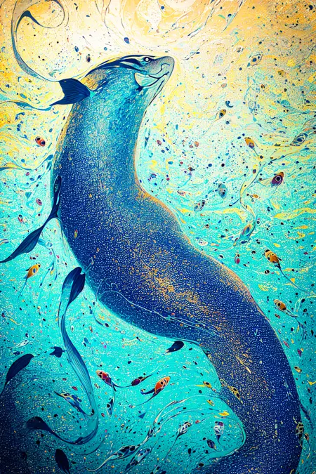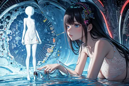 실험적 LoRA: 전체 이미지가 비눗방울 막 같은 복잡한 패턴으로 침식되어 선들이 젖은 듯한 느낌을 줍니다.