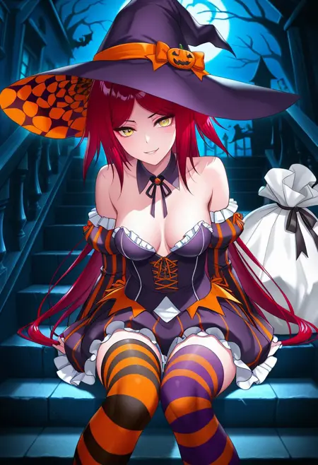 服装13(万圣节):万圣节, 万圣节服装, 过膝袜, 女巫帽, 条纹, 不对称裤袜, 不匹配的裤袜, 分离袖子, 裸露肩膀, 分离领子