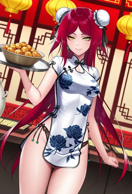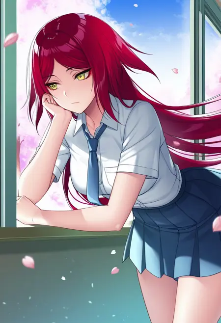 外观:su_jinglei, 1girl, 单人, 长发, 黄眼睛, 红发, 极长发, 中等胸部,