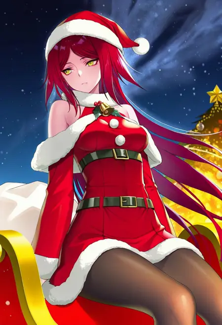 服装8(圣诞老人装):圣诞帽, 连裤袜, 圣诞老人服装, 裸露肩膀, 腰带, 铃铛, 圣诞节, 连衣裙,