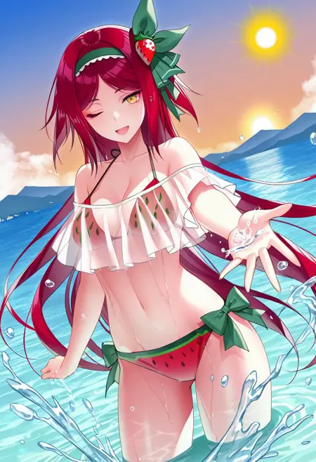 服装14(比基尼):泳装, 西瓜图案, 比基尼, 肚脐, 草莓图案, 发带, 透明, 露肩, 红色比基尼