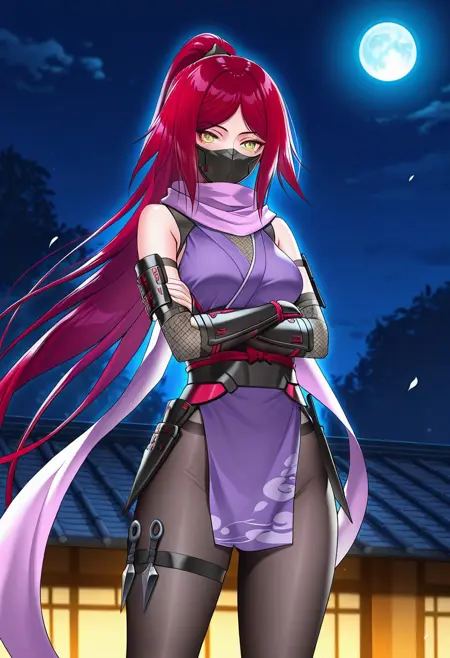 服装16(忍者):忍者, 武器, 连裤袜, 面具, 飞镖, 护甲, 围巾, 日式服装, 口罩, 黑色连裤袜, 马尾辫, 大腿绑带, 臂甲, 手套