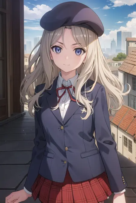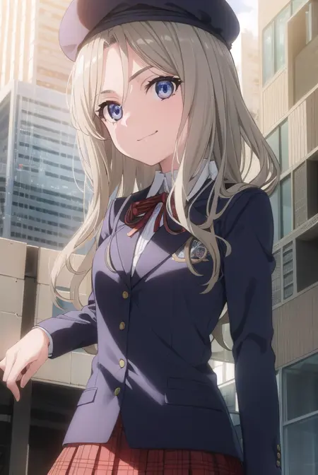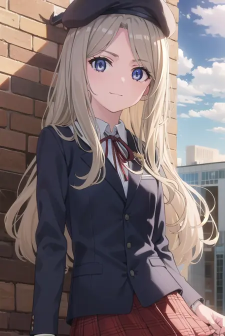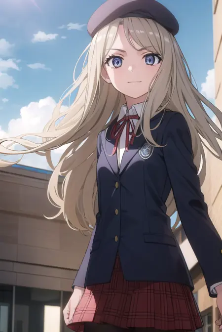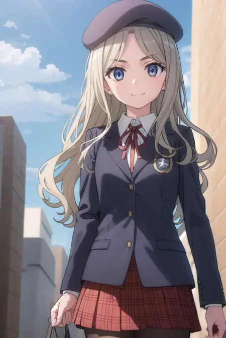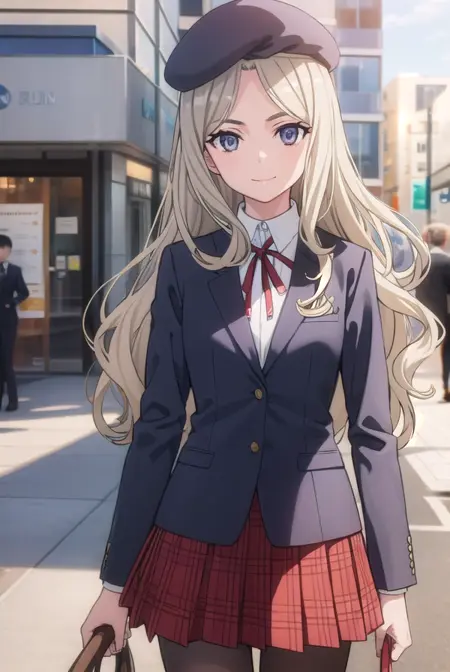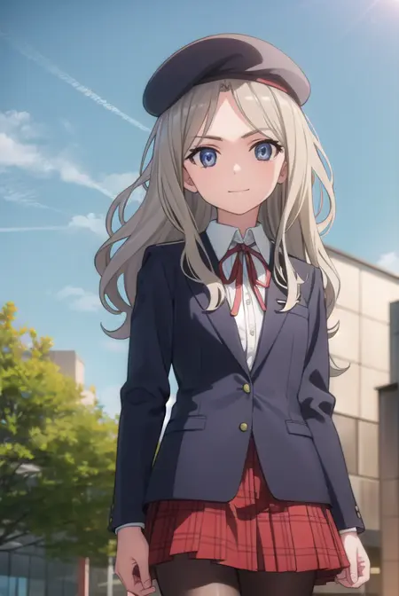 치마, 모자, 리본, 교복, 재킷, 스타킹, 체크무늬, 베레모, 체크치마, 블레이저,