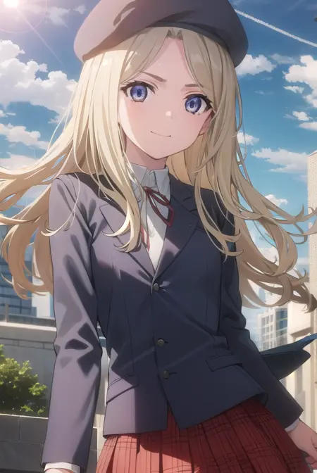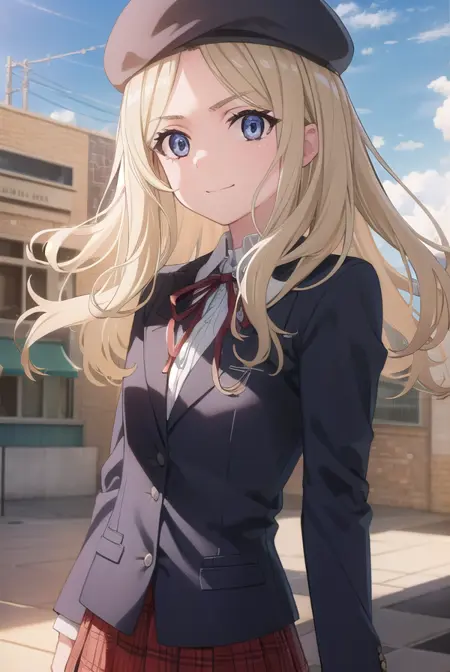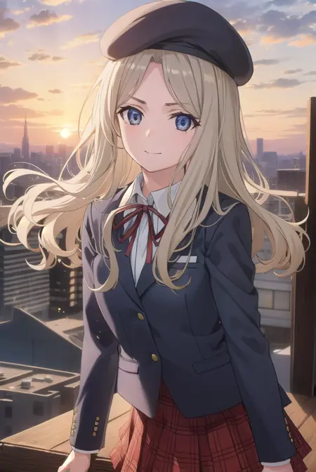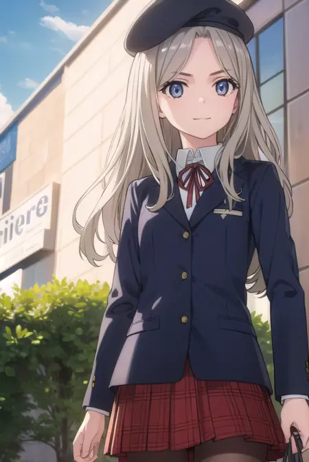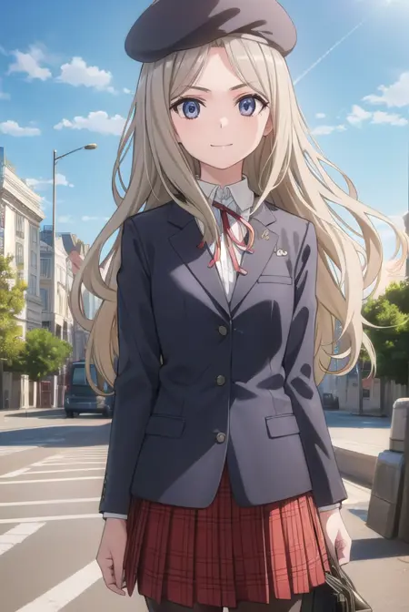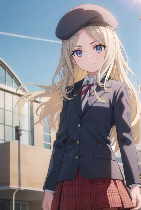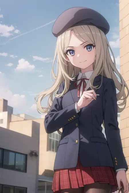skirt, hat, ribbon, school uniform, jacket, pantyhose, plaid, beret, plaid skirt, blazer,