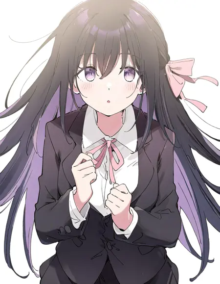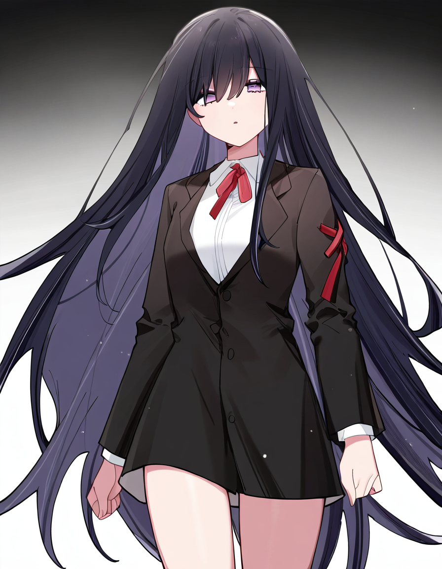 jacket,long sleeves,hair between eyes,black jacket,white shirt,ribbon,