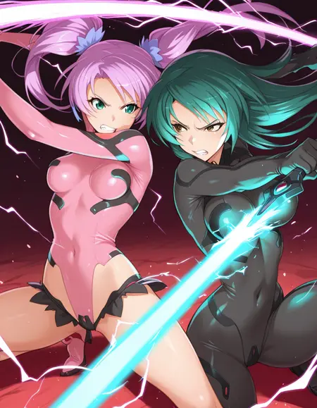H 게임 "Hangyaku no Beretta Ingoku ni Dachiru Senshi (反逆のベレッタ~淫獄に堕散る戦士~)"의 베레타(Beretta) 및 루주(Rouge).