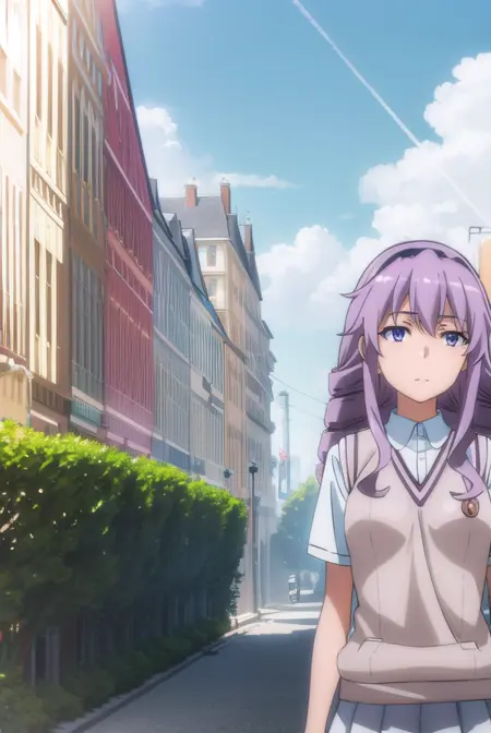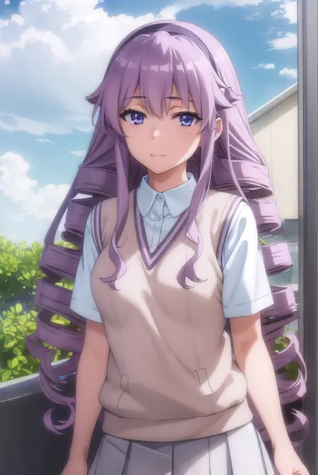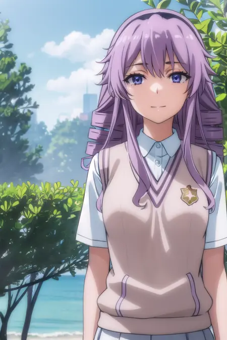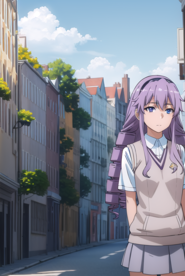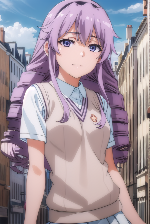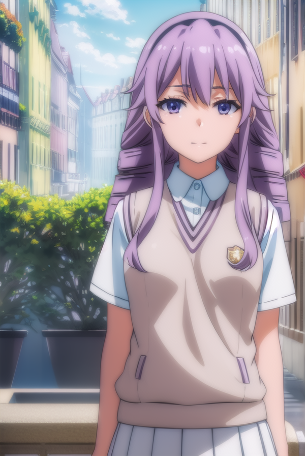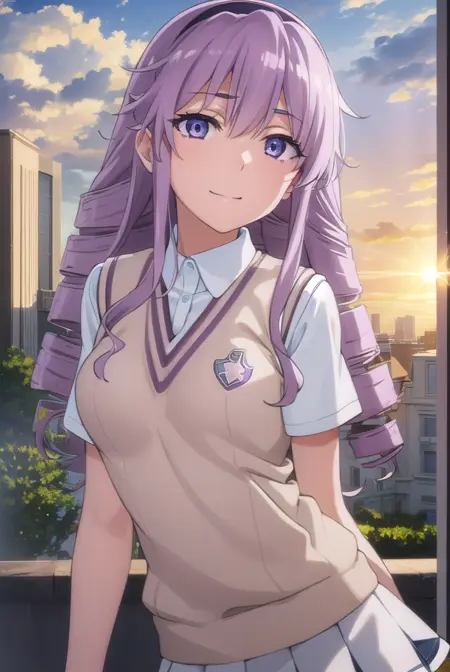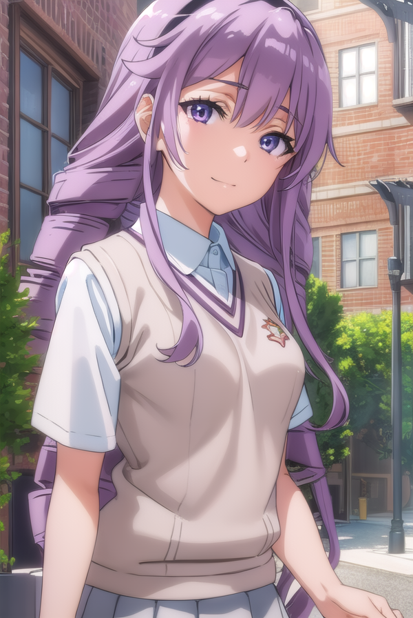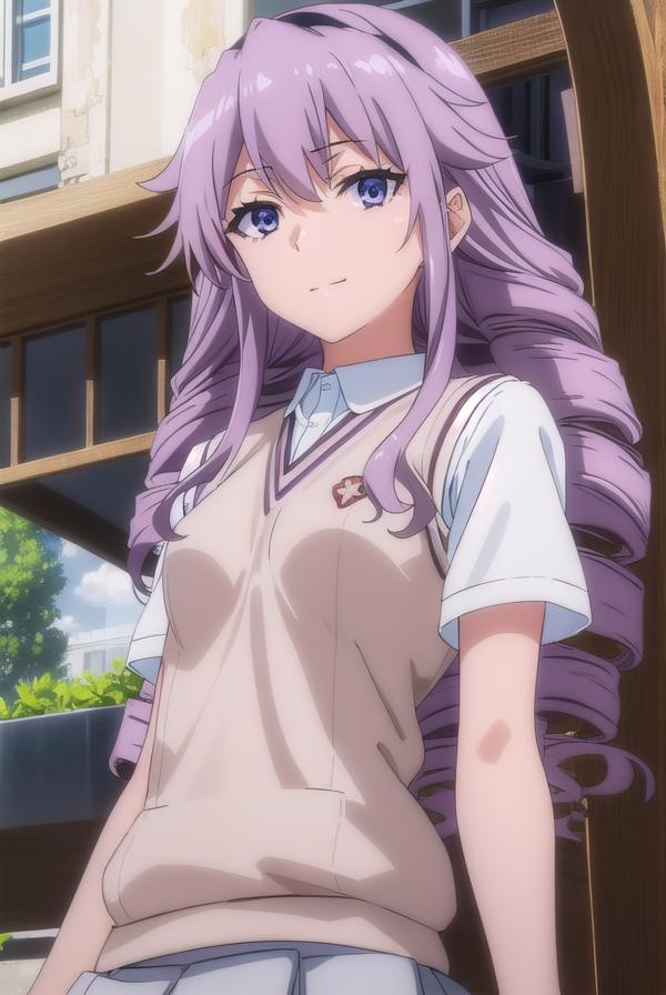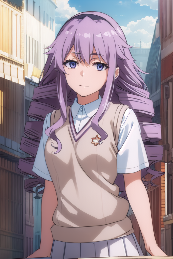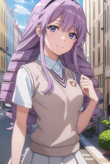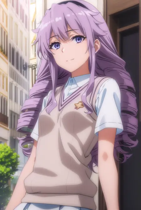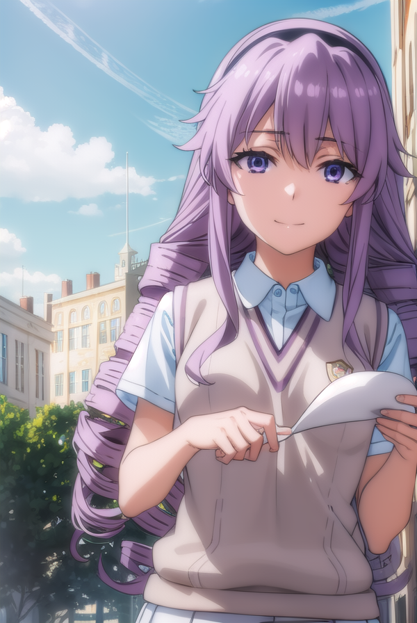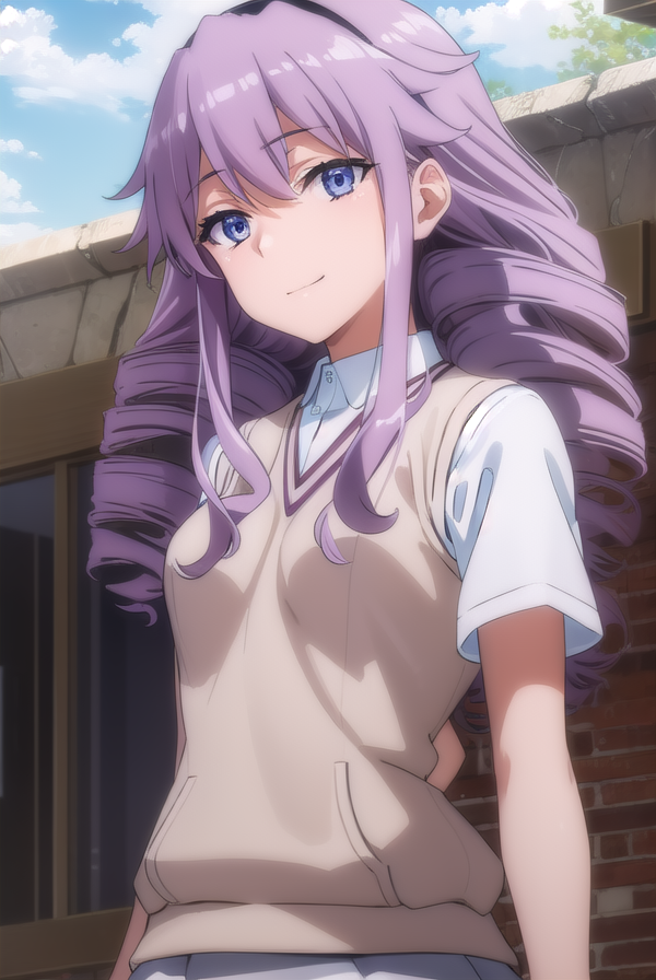 junko hokaze,长发,(紫色眼睛:1.2),紫色头发,发带,钻头发型,