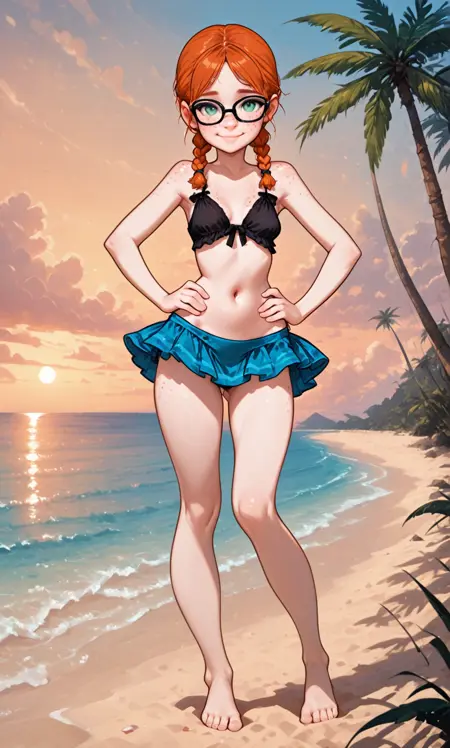 卡通风格,基于我的Pixai配置,比例为4-5头高(半短堆)。