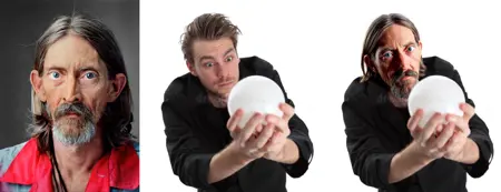 🧠 Focus Faces: precise face swaps, keeping the original head shape and hair while transferring facial identity and expression.