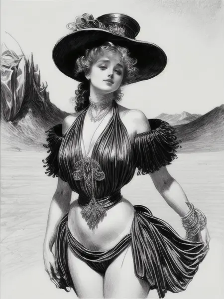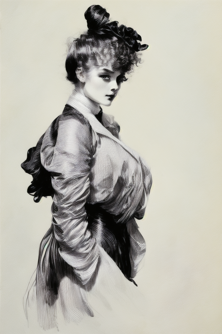 すべてのバージョンは、トリガーワードの有無で異なる効果を得られます。トリガーワードを使用すると、チャールズ・ダナ・ギブソンのスタイルにより正統な結果が得られます。ただし、高いCFG値ではトリガーワードを使用すると画像が崩れることがあります。有無を試してみてください。