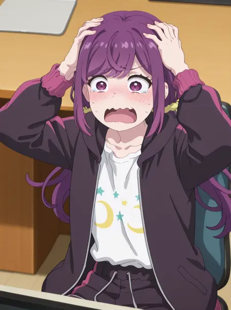 main look: purple hair, long hair, 1girl, solo , scrunchie, twintails, purple eyes, hair ornament