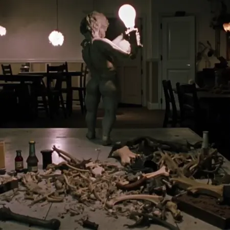 必要に応じて、「l34th3r a filthy small decrepit house with a skeleton on the floor and also some occult objects on the carpet. On the backside we can a steel door and ancient uncanny mannequins.」という文を試すこともできます。