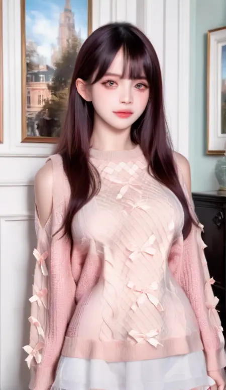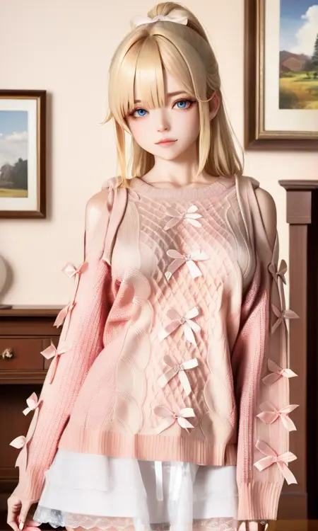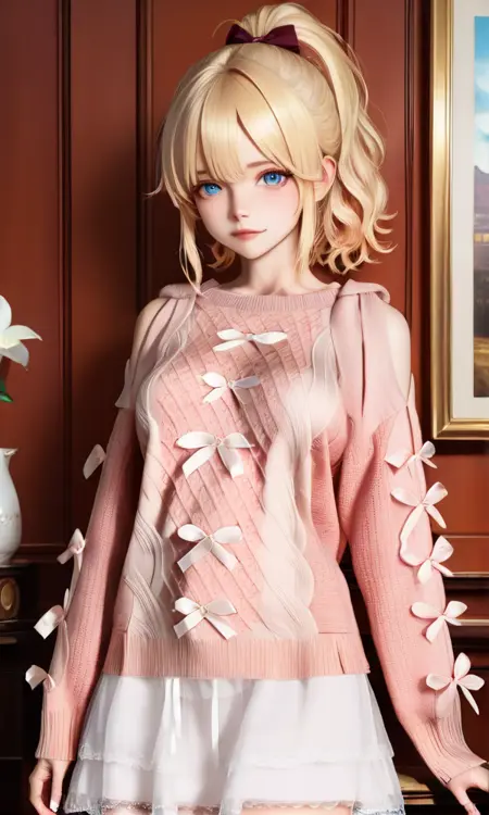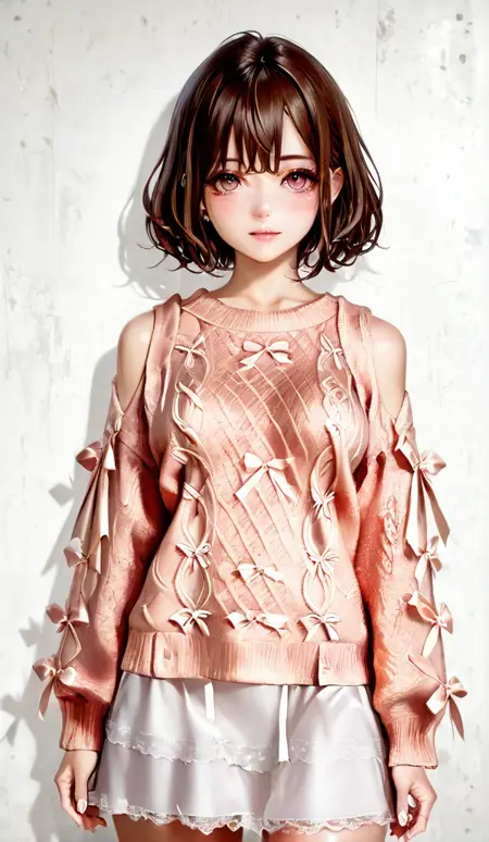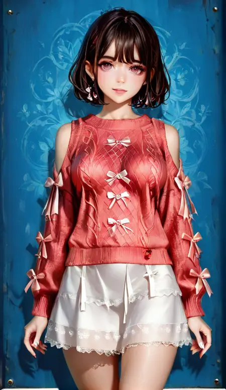 Prompt word: sweater, skirt, cute_sweater, white skirt