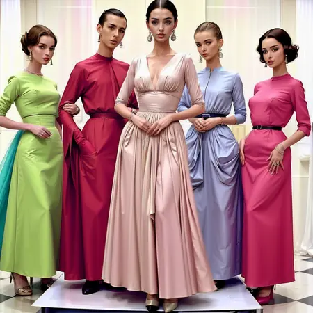 Generates dresses and outfits typical of Madame Gres designs of that decade