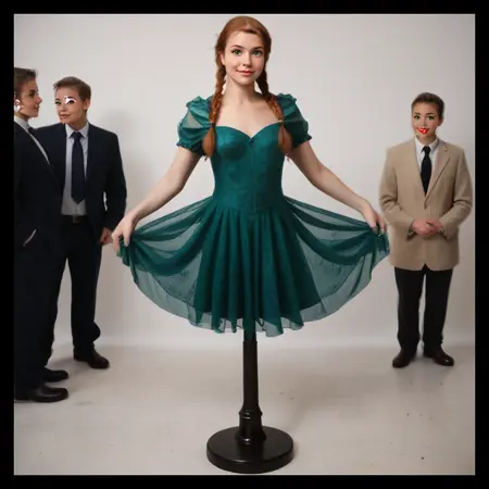 이것은 여성을 전시용 막대에 추가하여 공중에 떠 있는 것처럼 보이게 합니다. 과거의 옷장수들은 맞춤 옷을 만들기 위해 이러한 인형 같은 객체를 사용했습니다. 지금은 인형이 아니라 대상이 작업되고 있습니다 ;)