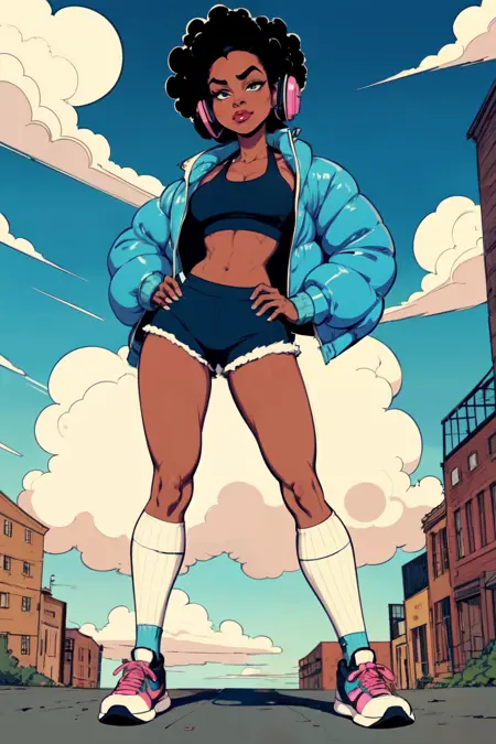 By default the model will produce 3d, digital painting style images. For a more cartoon/comic look, I recommend (not all at once, try these one or two at a time):