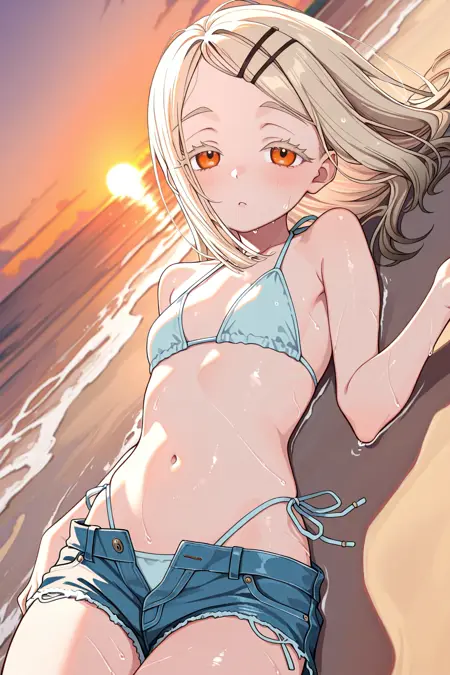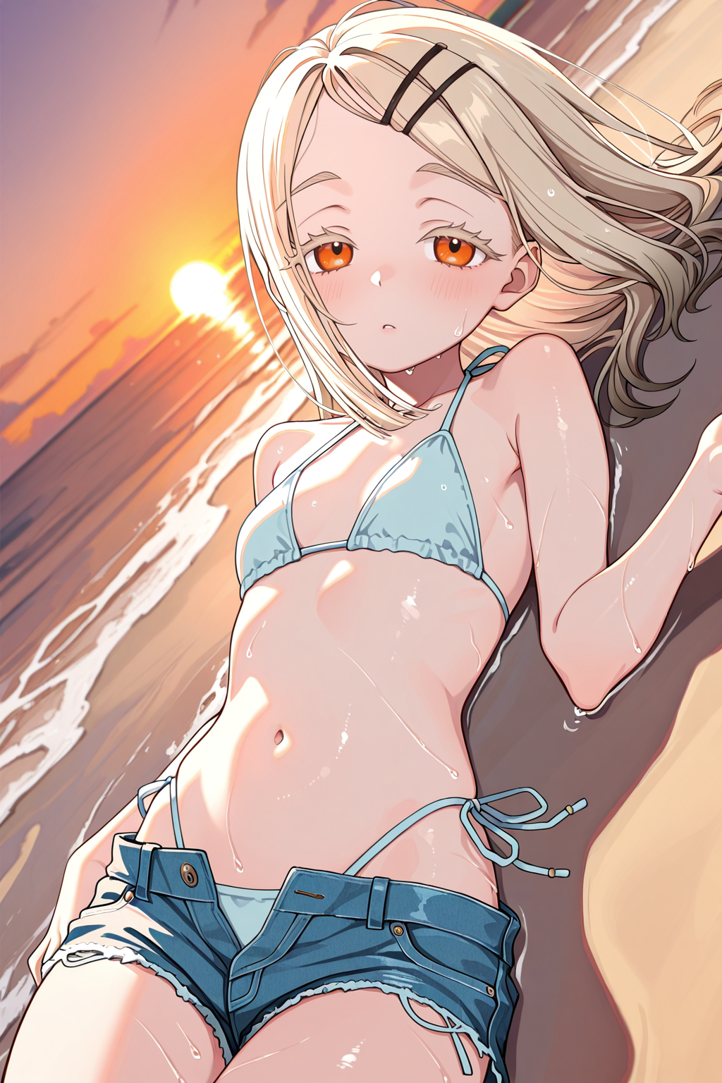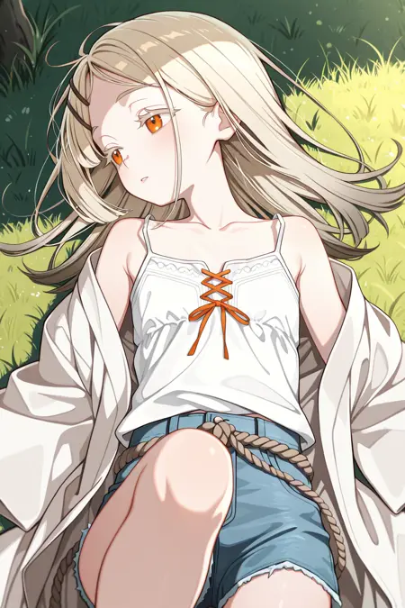 캐미솔, 클라비컬 뼈, 청바지 반바지, 로브, 로프 벨트, 짧은 반바지, 흰 캐미솔, 흰 로브