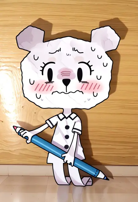 terigumball, blush, 1girl, solo, black eyes, animal ears, no humans, flat chest, , solid oval eyes, short sleeves, buttons,