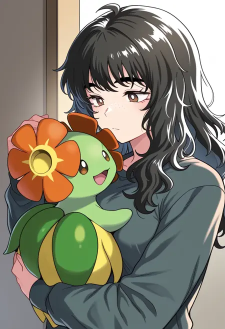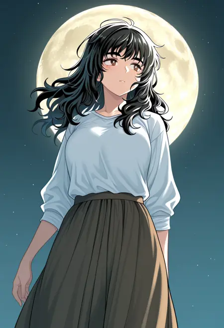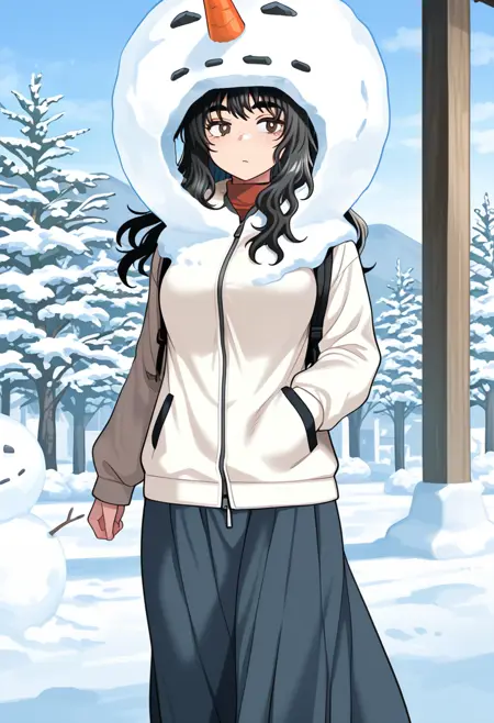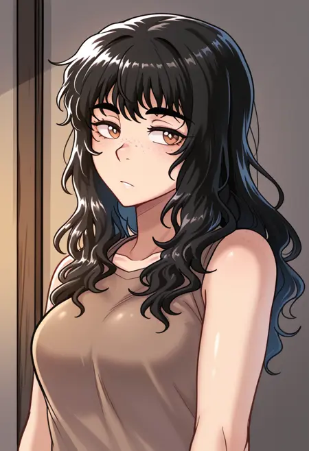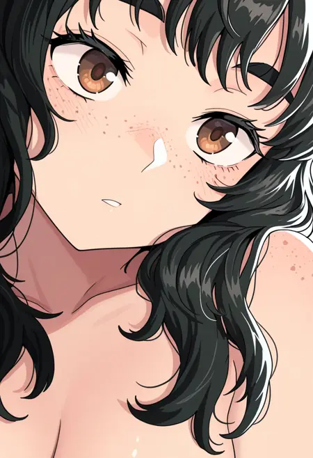トリガーワード: sayanee, 1girl, 黒髪, 長髪, 茶色の目, そばかす