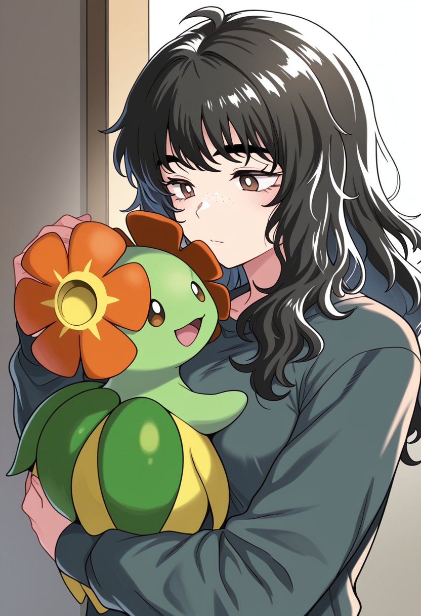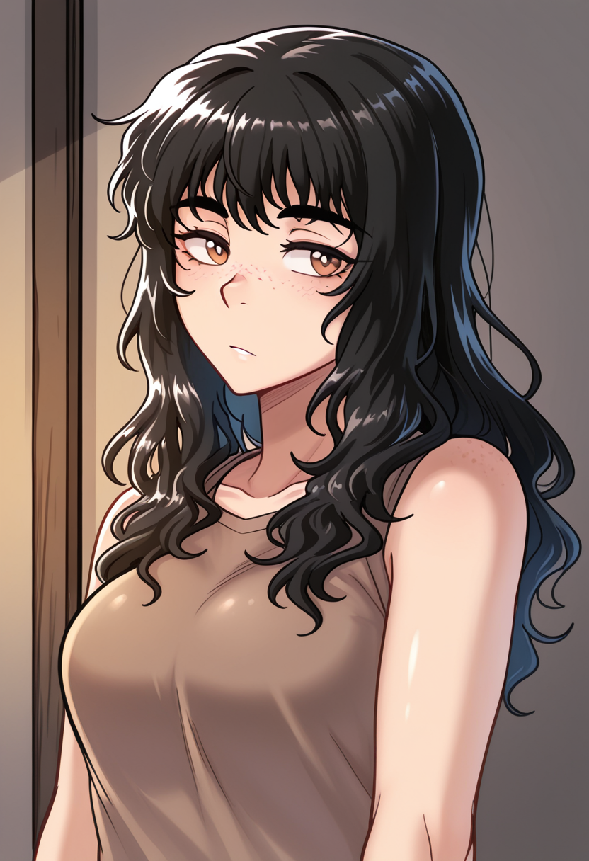 트리거 단어: sayanee, 1girl, black hair, long hair, brown eyes, freckles