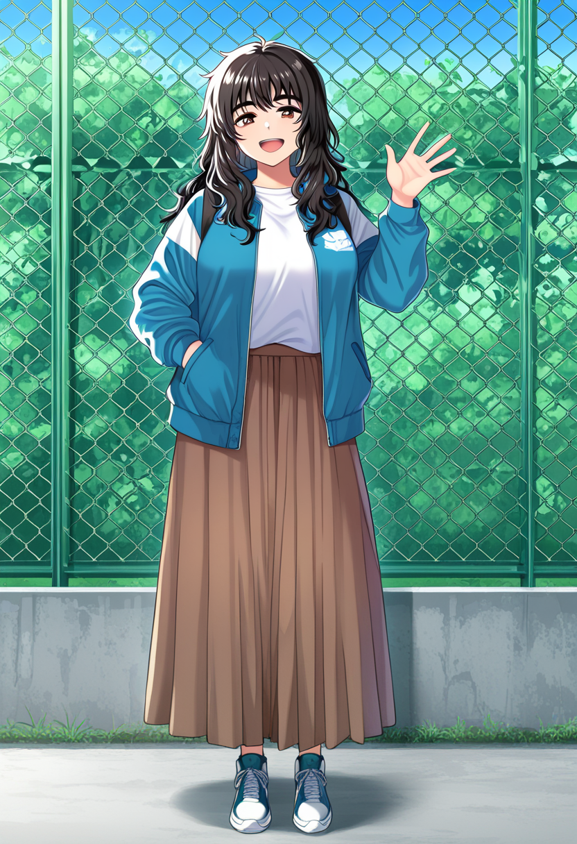 의상: 긴 치마, 재킷, 셔츠