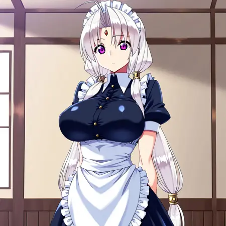 Ryofu Housen: SH2, Ryofu, white hair, long hair, low pigtails, twin pigtails, purple eyes, forehead jewel, large breasts