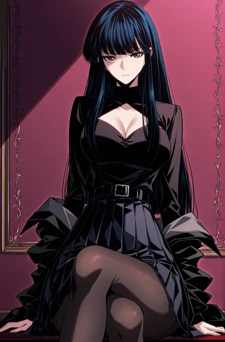 지젤, 1소녀, 솔로, 붉은 갈색 눈, 진한 파란색 머리, 긴 머리, 곧은 머리, 곧은 앞머리, 눈 사이의 머리, 긴 옆머리, 풀어진 머리,