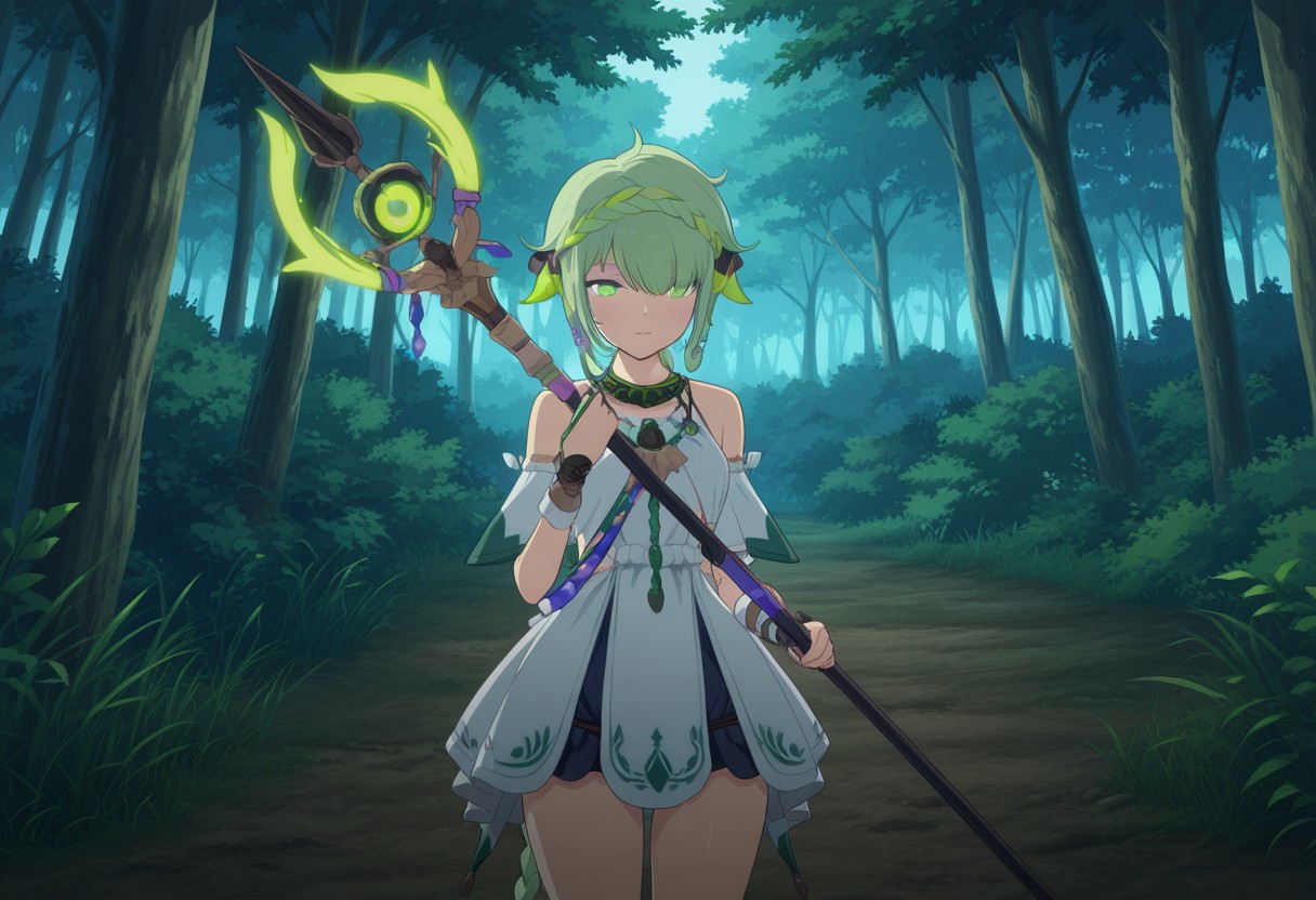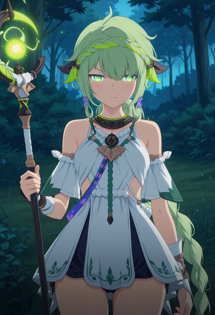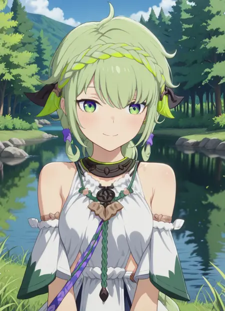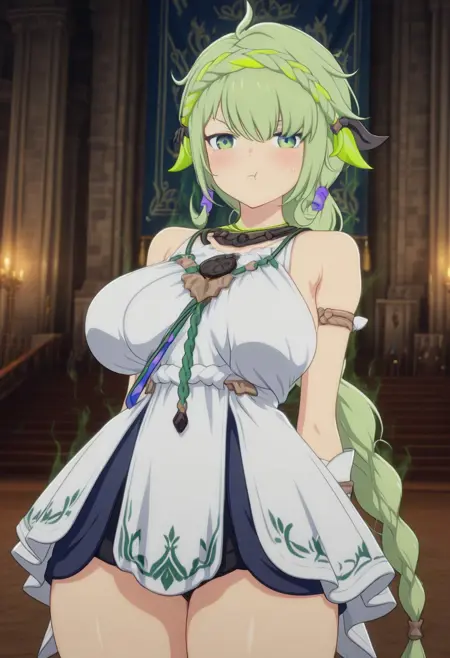 トリガー語は:Airona、緑色の髪、前髪、編み込み髪、長い編み髪、緑色の瞳、