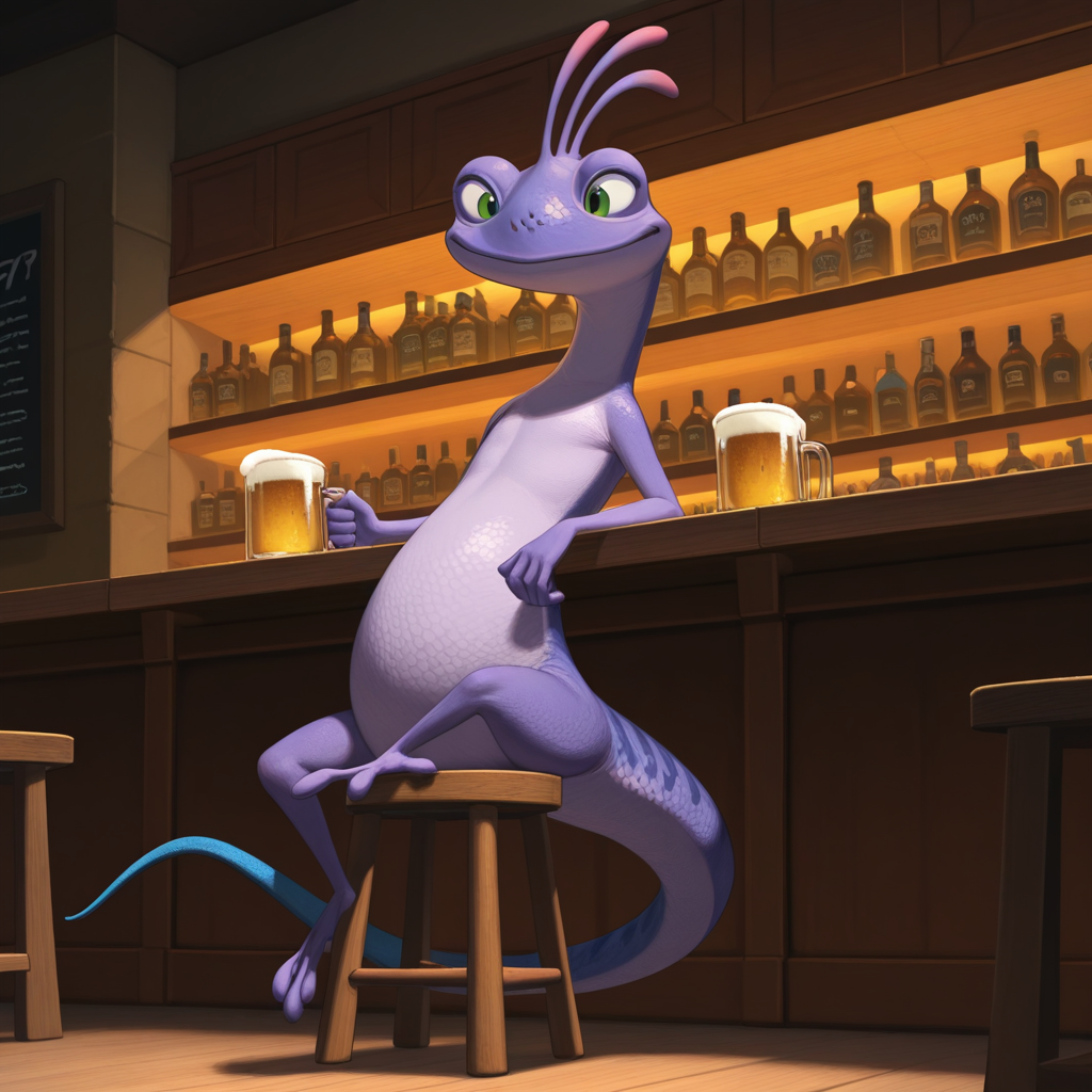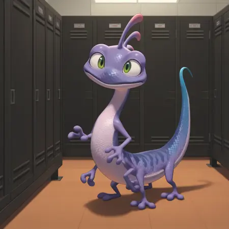 영화 '몬스터 주식회사'의 랜달 보그스. LoRA는 그의 2001년 영화 등장 모습을 기반으로 합니다.