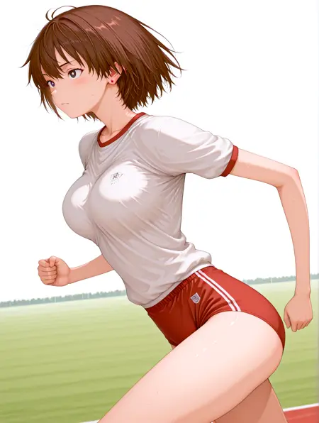 体操着 : gym clothes, Red Bloomers,red gym bloomers, buruma