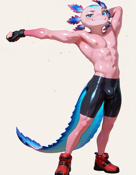 axo, axolotl, salamander, amphibian, male, anthro, blue eyes, pink body,