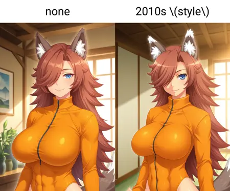 在提示词中使用 "2010s (style)" 会使插图更接近经典游戏风格。