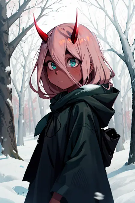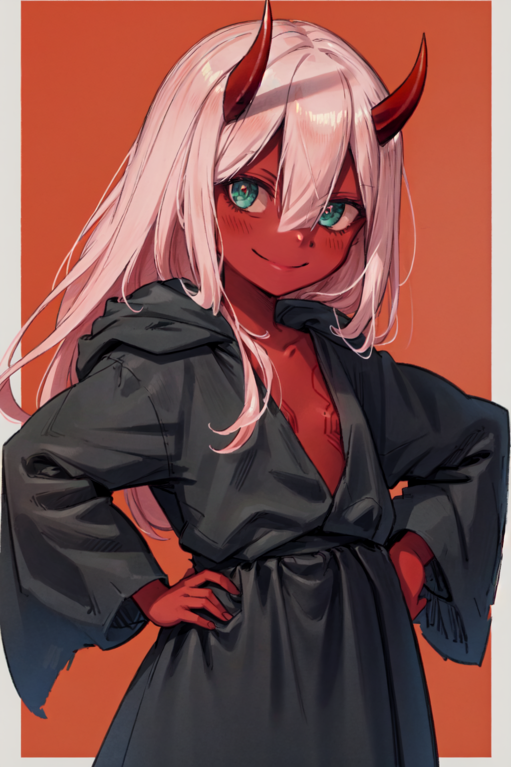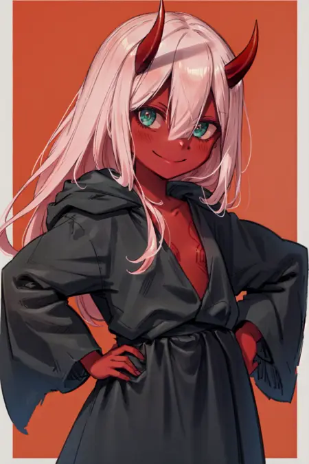 Outfit is : Black robe or Red Uniform (Zero Two's uniform, might not work well, only 1 image with it to train)
