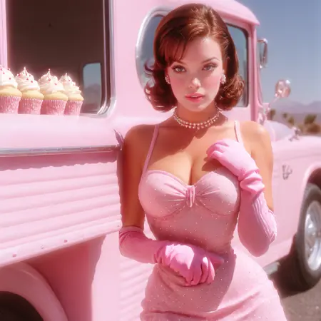 1950年代後半から1960年代半ばのアメリカン・アナーキーを、過剰にスタイリッシュなピンクのレンズを通して再構築しています。