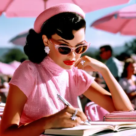 야자수 아래의 고전적인 컨버터블, 황혼에 빛나는 네온 다이너, 고양이 눈 선글라스를 낀 화려한 성인들, 그리고 초현실적인 교외의 평화로움.
