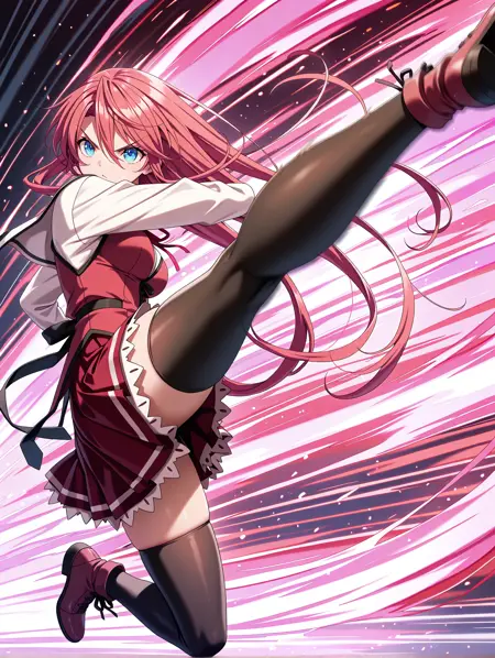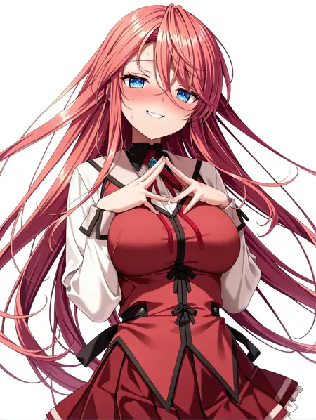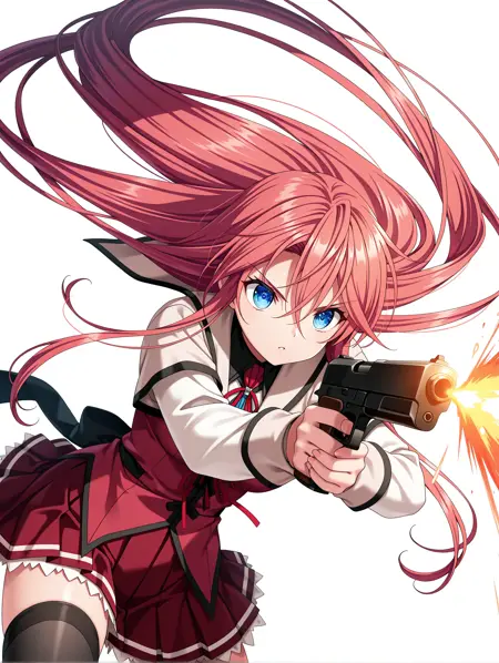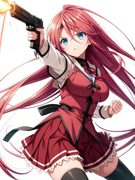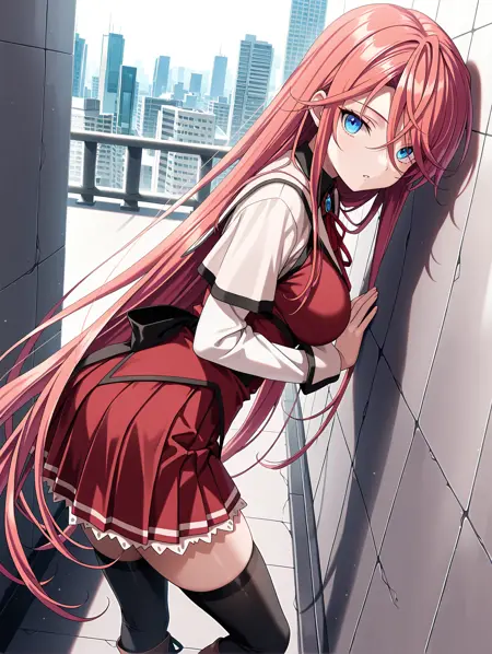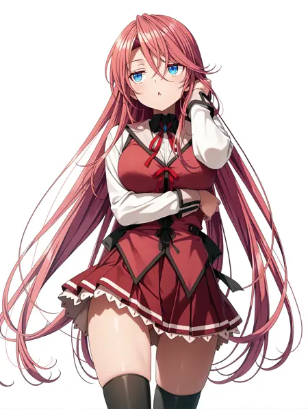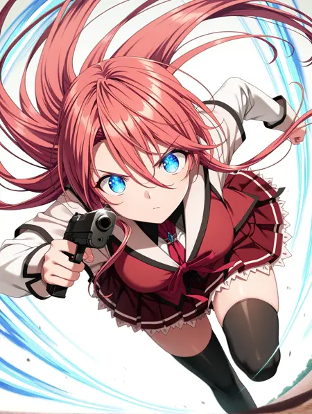 トリガーワード・y_taeko,red hair,very long hair,hair over one eye,hair between eyes,blue eyes,