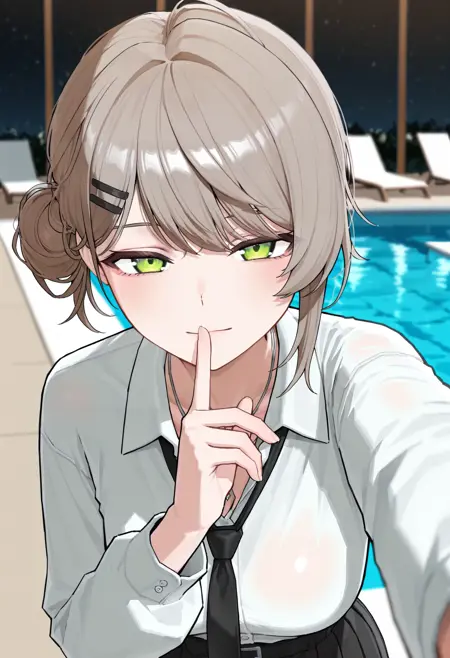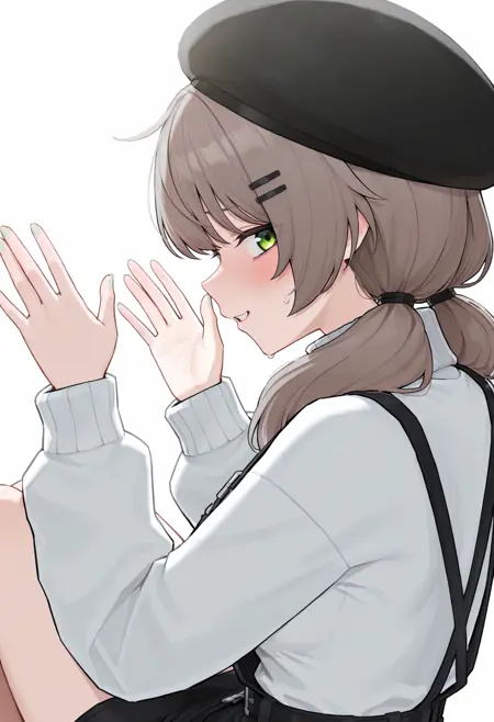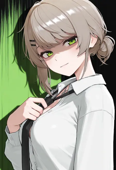 | Trained Words | BSVII, brown hair, medium hair, low twintails, hairclip, hair tie, bangs, green eyes, black beret, heart necklace, white sweater, turtleneck sweater, long sleeves, black skirt, overall skirt, black belt, belt buckle Copied! BSVII, brown hair, medium hair, single side bun, single sidelock, hairclip, swept bangs, green eyes, silver necklace Copied! TRVII, brown hair, long hair, blunt bangs, twintails, hoop earrings, green eyes, black headwear, baseball cap, crop top, black shirt, multicolored shirt, star necklace, striped sleeves, clothing cutout, armpit cutout, zipper, fingerless gloves, glove cutout, black gloves, halterneck, belt, black shorts, green skirt, overskirt, thigh strap, thigh pouch, fishnet socks, kneehighs, black footwear, combat boots Copied! |