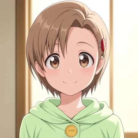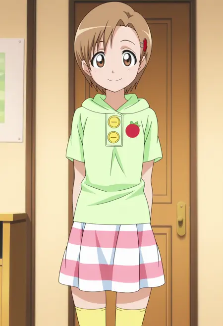 | Trained Words | yuzu, 1girl, short hair, brown eyes, brown hair, hairclip, hair ornament,Copied! anime screenshot, anime coloring,Copied! green hoodie, striped skirt, yellow thighhighs,Copied! hooded dress, white dress,Copied! yellow helmet, sleeveless shirt, yellow shirt, purple bike shorts, white glovesCopied! |