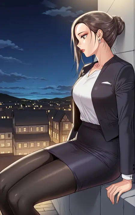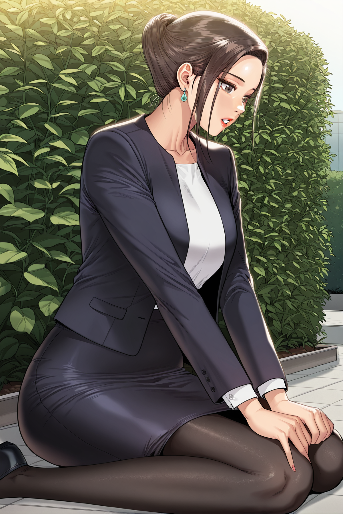 Yeong_服装,深海军蓝夹克,白色衬衫,海军蓝裙子,铅笔裙,黑色连裤袜,