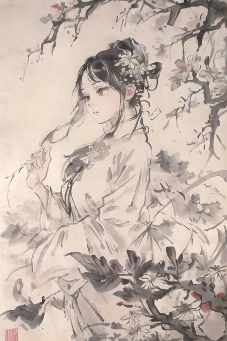 A LoRA mixed model of my earlier 餃子Mix. This checkpoint kind of puts the whole picture through a monochromatic filter reminiscent of the 水墨畫 style calligraphy used in Sinosphere traditional paintings. It has an extremely heavy effect on trees and landscapes, where the leaves turn into the ink blotting reminiscent of calligraphy painting. Less-so on the characters, as a result the tuning ratio has been adjusted to preserve the anime-esque style of the characters.