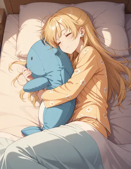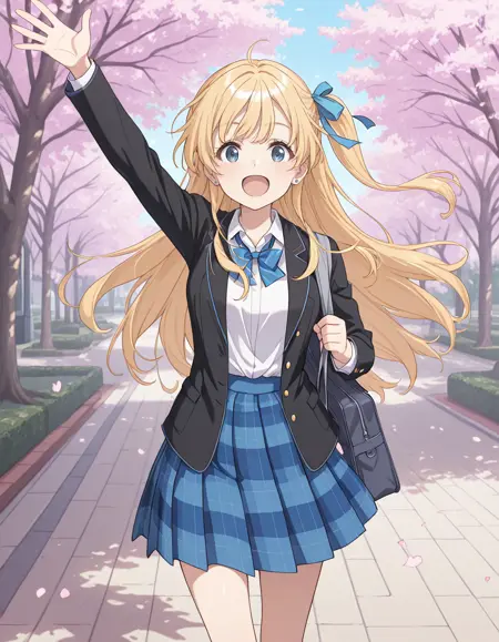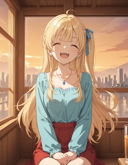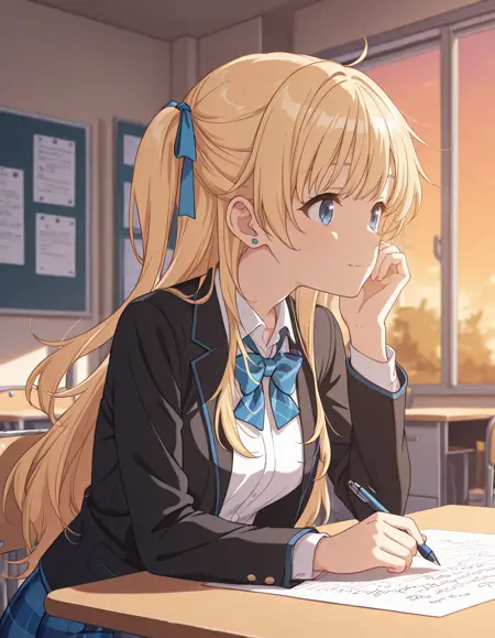 <lora:yuuko_hiiragi-chiramune_s1-ixl-anime-soralz:1>, hiiragi yuuko (chiramune),长发,金发,一侧扎起,呆毛,蓝色发带,蓝眼睛,蓝色耳钉