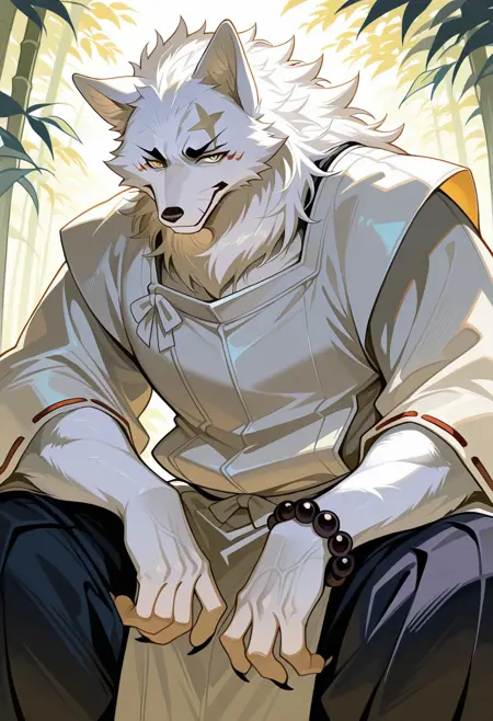 Wolf boy,g1nt4r0,white fur,yellow eyes,