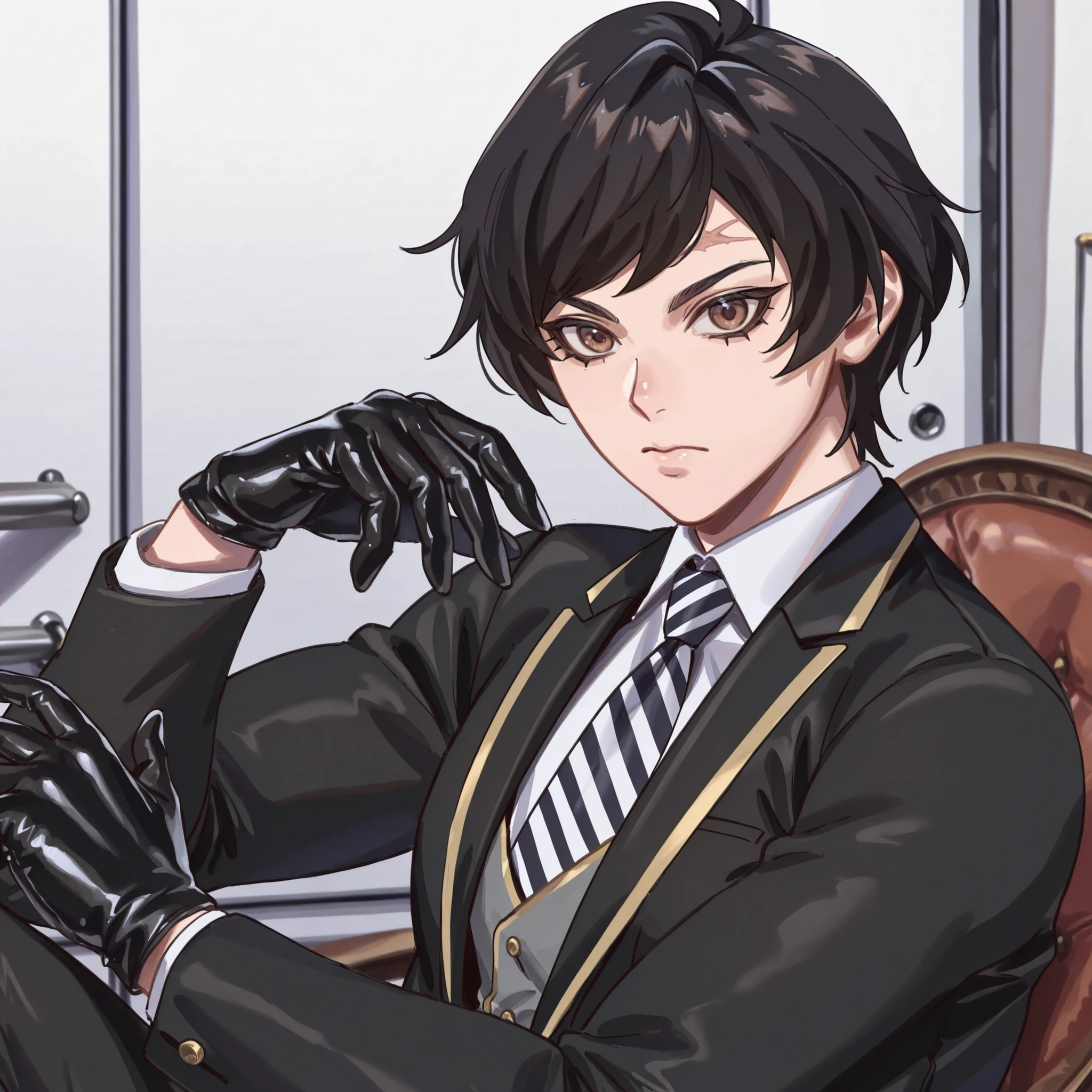 トリガー語: 平坂由香、鋭い顔立ち、短い髪、黒髪、茶色の目、額の傷、ネクタイ、ジャケット,