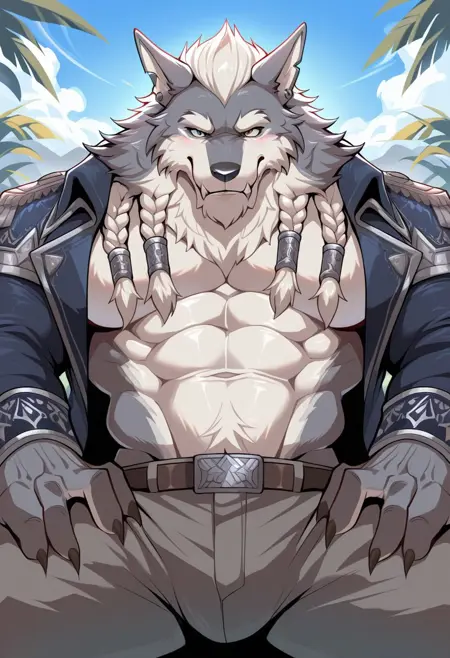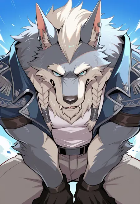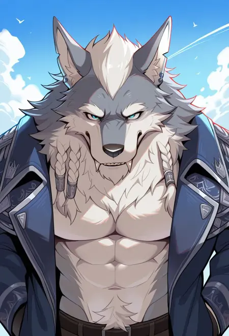 Wolf boy,G3nn gr3ym4n3,grey fur,blue eyes