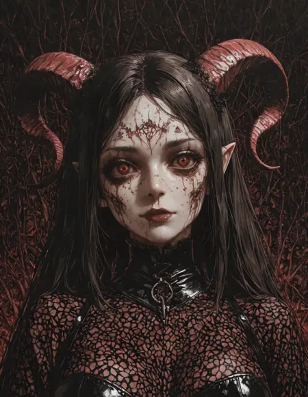 在提示词开头添加触发词 'illushorror'。其他有用的触发词:'horror (theme), traditional media, horror art'。
