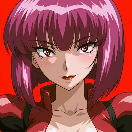 1girl, 0boro, 보라색 머리, 짧은 머리, 앞머리, 붉은 눈, 붉은 입술